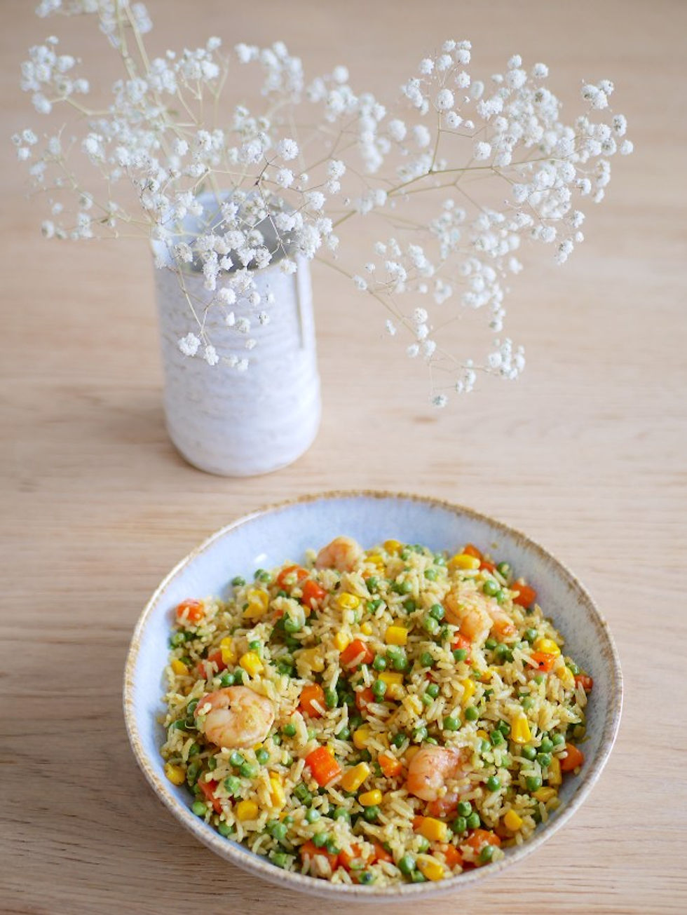 RIZ SAUTÉ AUX AUX CREVETTES ET PETITS LÉGUMES À LA VIETNAMIENNE